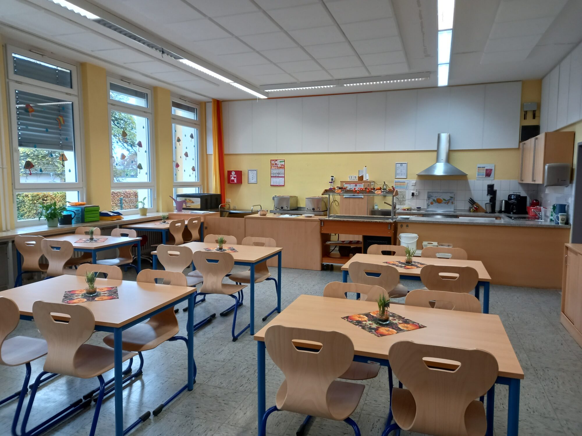 Die Klassenräume werden ab mittags als Gruppenräume genutzt. Der OGS stehen zudem einige Nebenräume, die Turnhalle sowie der Schulhof für ihre Aktivitäten zur Verfügung.